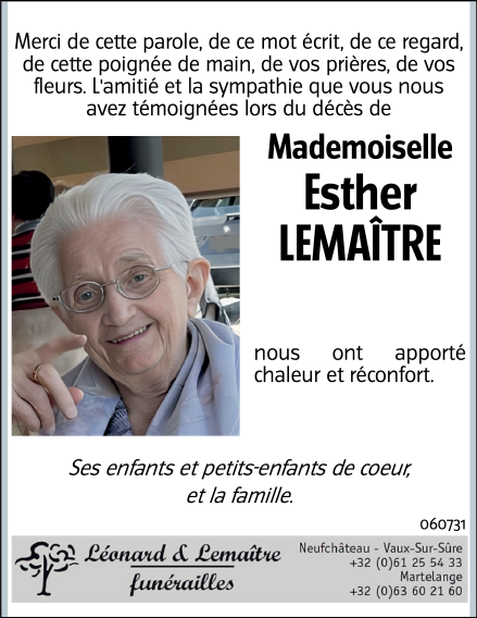 Décédée à Libramont-Chevigny (6800) le jeudi 30 novembre 2023 à l'âge de 97 ans