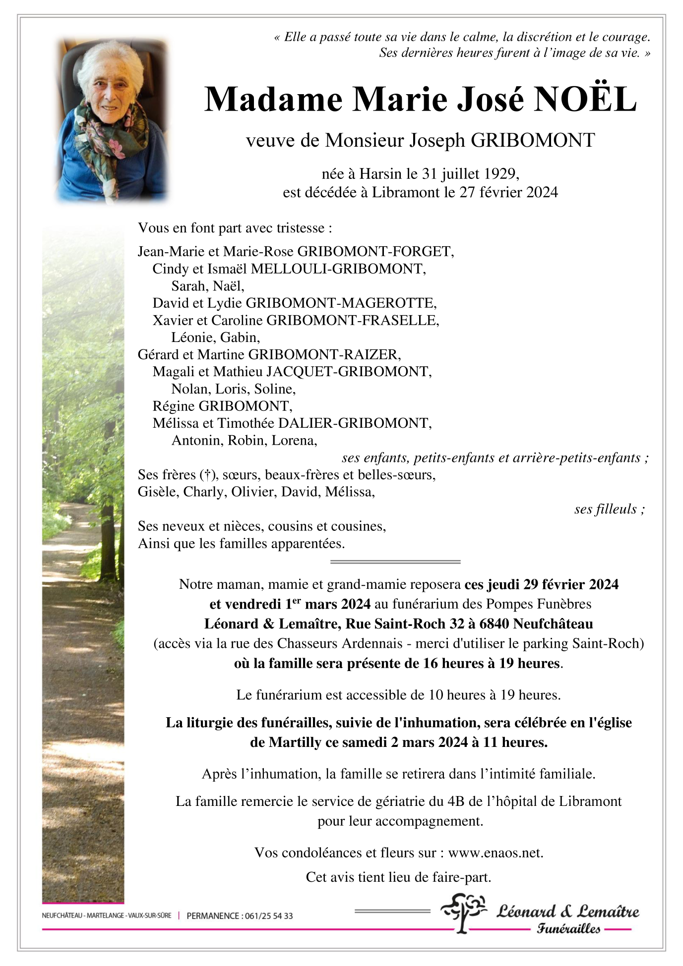 Veuve de Monsieur Joseph GRIBOMONT