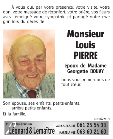 Né à Sibret (6640) le mardi 12 janvier 1932