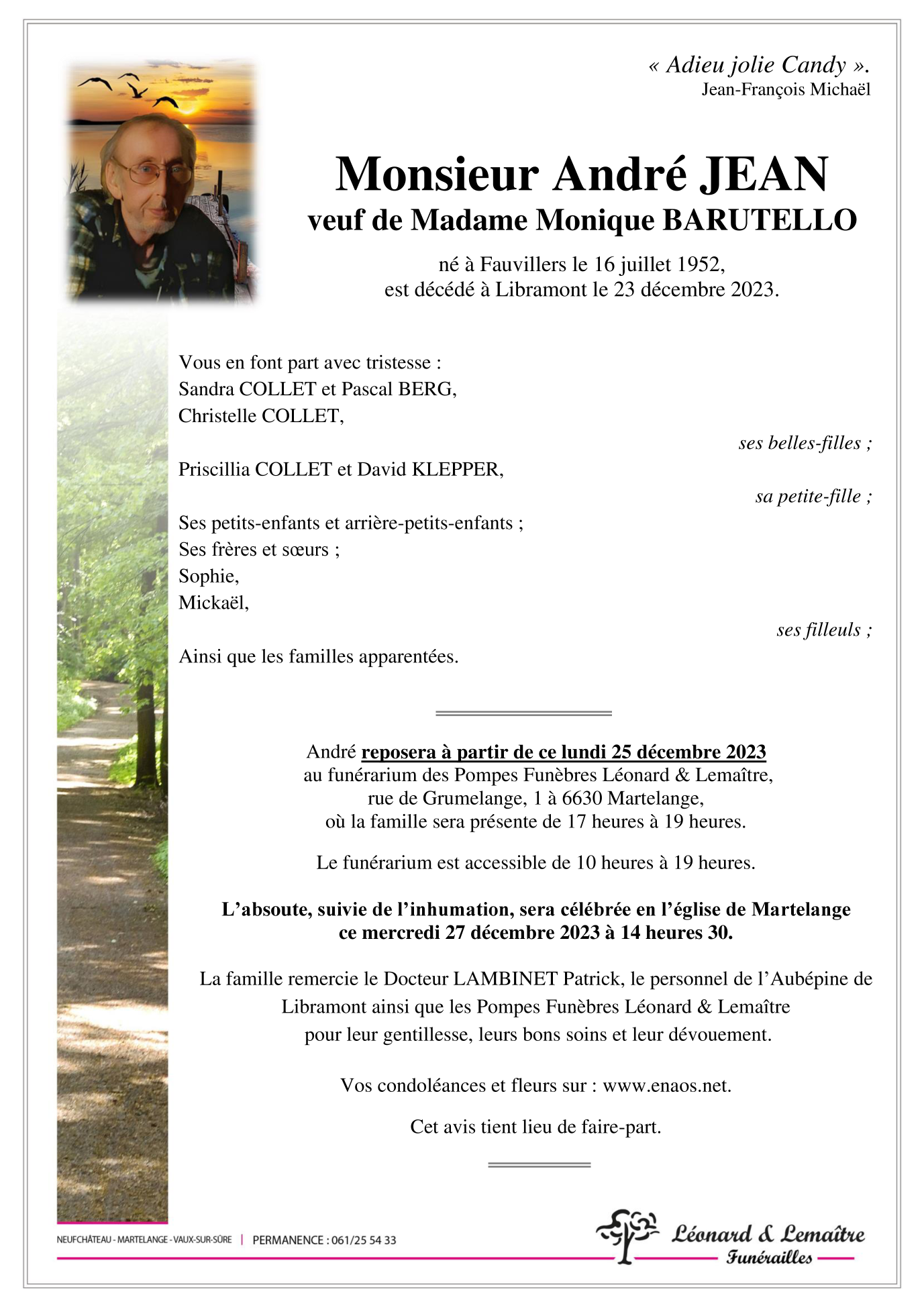 Décédé à Libramont-Chevigny (6800) le samedi 23 décembre 2023 à l'âge de 71 ans