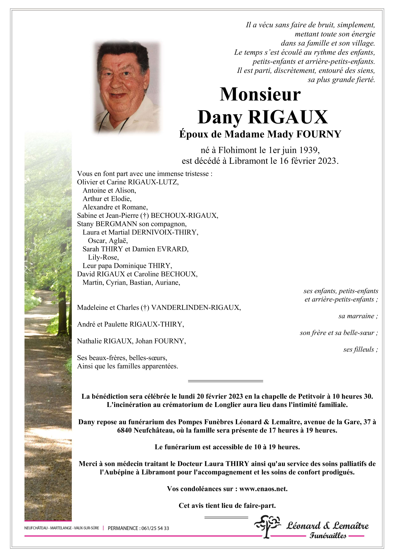 Décédé à Libramont-Chevigny (6800) le jeudi 16 février 2023 à l'âge de 83 ans